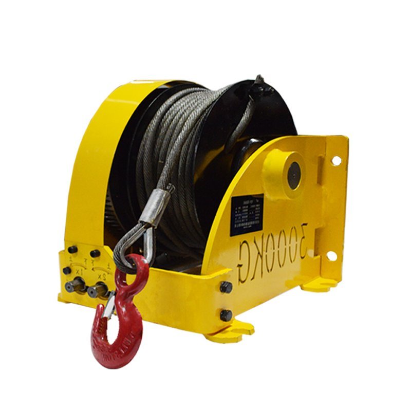 Hand-operated dual-speed winch, compatible with electric and pneumatic tools, offering both fast and slow speed options. Ideal for various applications in remote areas such as wilderness, shores, and mountains where power input is unavailable.